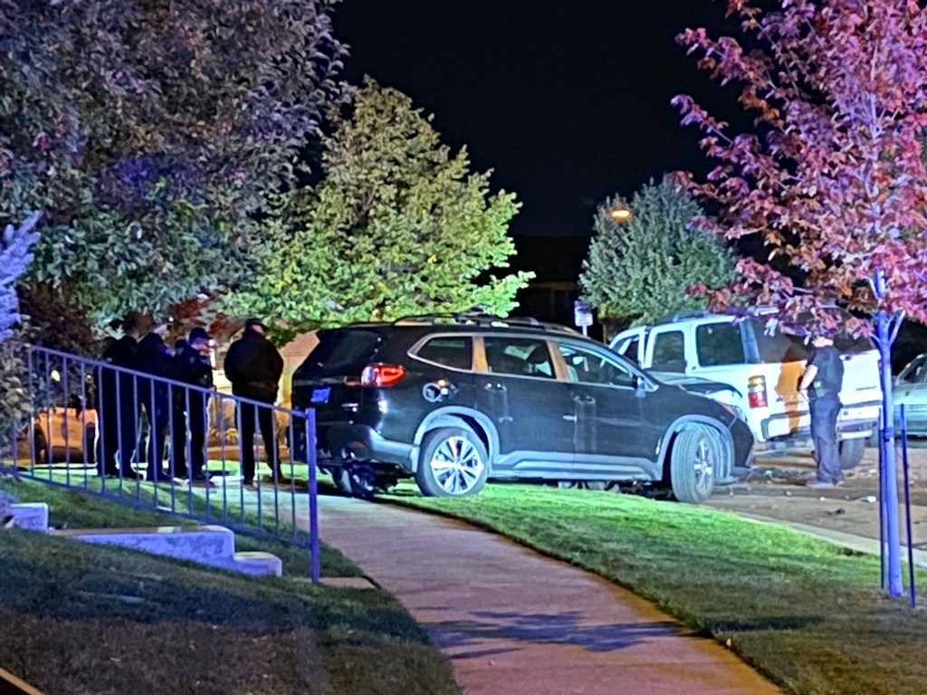 Initially, the neighbor’s car was shoved up onto their yard. The police put it back on the street.
