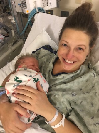 By the time I was told to stand, Camden had already been placed on a warming bed, out of Kate’s sight. I leaned over and kissed Kate and then walked over to meet my son.